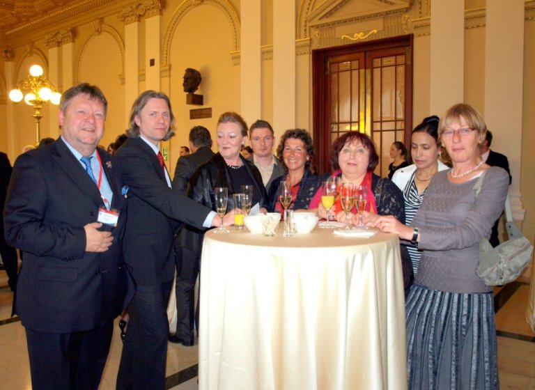 Die Anspannung war ihnen deutlich anzumerken. Oberbürgermeister Richard Leibinger, Dr. Herbert Jochum und Wabe-Geschäftsführer Martin Müller fieberten im Prager Hotel „Zofin Palace“ auf einer herrlich gelegenen Insel der Moldau der Entscheidung entgegen. Sie waren mit der Wabe gGmbH zwar schon unter den besten 13 Unternehmen in Europa, aber welchen Platz sie letztendlich belegen würden, dieses Geheimnis sollte erst bei der offiziellen Preisverleihung in der tschechischen Hauptstadt gelüftet werden. Der Vizepräsident der Europäischen Kommission, Günter Verheugen und der tschechische Wirtschaftsminister Vladimir Tosovsky eröffneten die feierliche Preisverleihung mit Galaabend und hießen die 13 besten europäischen Unternehmen willkommen. Es galt, beispielhafte Maßnahmen und Initiativen für die Gründung und Unterstützung von Unternehmen auf lokaler, regionaler und nationaler Ebene auszuzeichnen, die Vorbilder für alle Regionen Europas sein können.