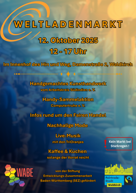 Am Sonntag den,12.10.2025 zwischen 12 und 17 Uhr heißen wir Sie herzlich willkommen auf unserem Markt des Weltladen in Waldkirch.